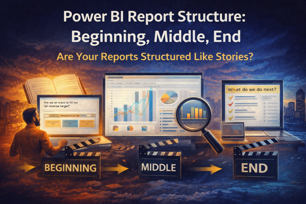 Data storytelling isn’t complicated. Great Power BI report structure starts with one simple idea: every good report should have a beginning, a middle, and an end. Storytelling in data is simpler than people think At this point in the series, people often assume that “data storytelling” means something complicated. Something creative.Something fluffy.Something subjective. It doesn’t. It … [Read more…]